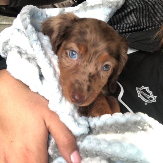 - Although stubborn at times, the Dachshund puppy trains easily when properly motivated